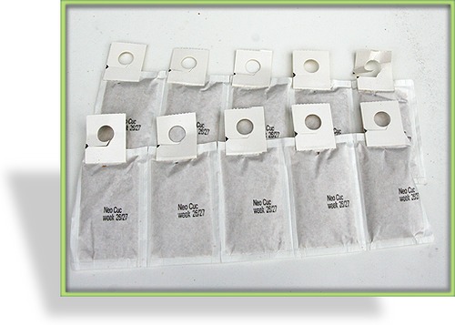 Die Raubmilben Amblyseius cucumeris kommen in Zuchtbeuteln