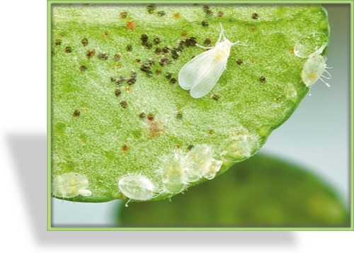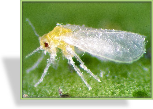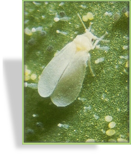 Die Weiße Fliege in der Vergrößerung - ein lästiger Schädling an Zimmerpflanzen und im Gewächshaus