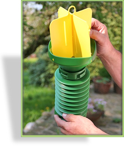 Die Gartenlaubkäferfalle wird von Mai bis Juni entweder aufgestellt oder aufgehängt