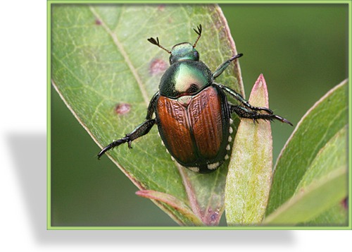 Und so sieht der Übeltäter aus: Ein schimmernder, grün-brauner Gartenlaubkäfer!